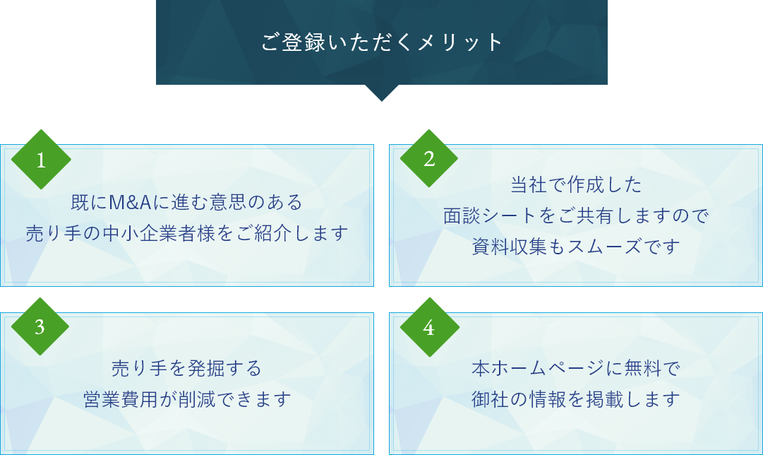 いつも中小企業のM&Aへご尽力頂きありがとうございます。